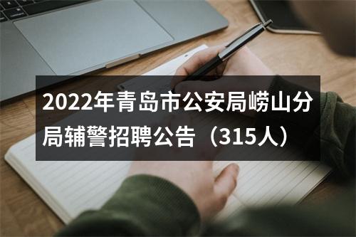 面向社会公开招聘辅警315名,招聘职数、资格条件等具体要求详见《2022年青岛市公安局崂山分局辅警招聘职位表》(附件1)。辅警在公安机关及其人民警察的指挥和监督下履行辅助性警务职责,经费保障列入财政预算,由公安机关管理使用,不具有公务员和人民警察身份,不具备执法资格,不享受人民警察的待遇。