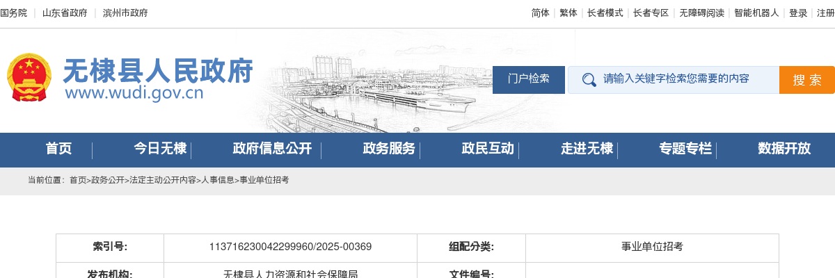 原标题:2025年无棣县事业单位公开招聘人员公告