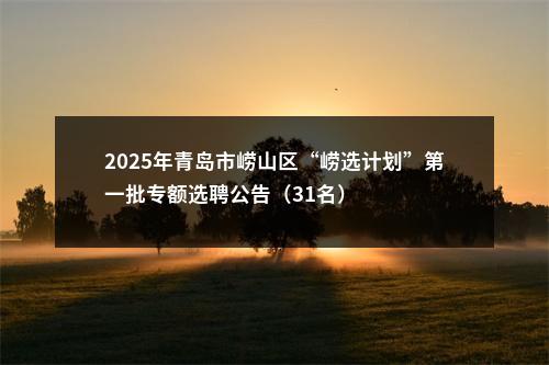 2025年“崂选计划”第一批专额选聘共计划选聘区直事业单位岗位31名左右,具体数量根据选聘工作情况确定。