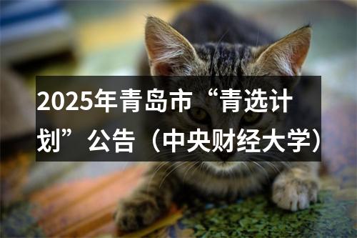 为加快建设新时代社会主义现代化国际大都市,加强年轻干部人才储备,青岛市决定组织实施2025年“青年干部人才选育计划”(简称“青选计划”),面向中央财经大学等高校选调2025年全日制优秀应届毕业生。有关事项公告如下。