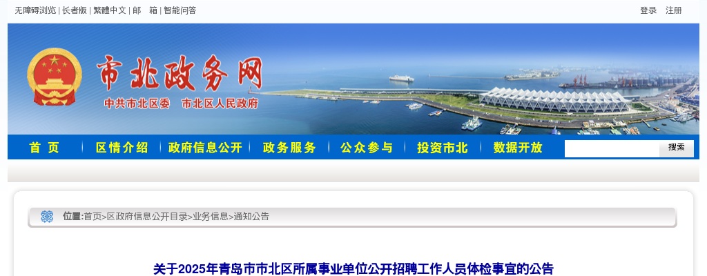 原标题:关于2025年青岛市市北区所属事业单位公开招聘工作人员体检事宜的公告